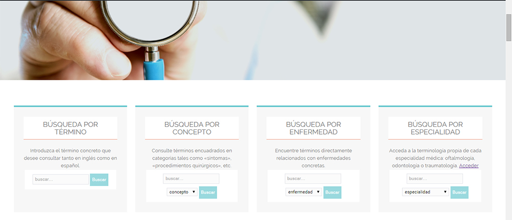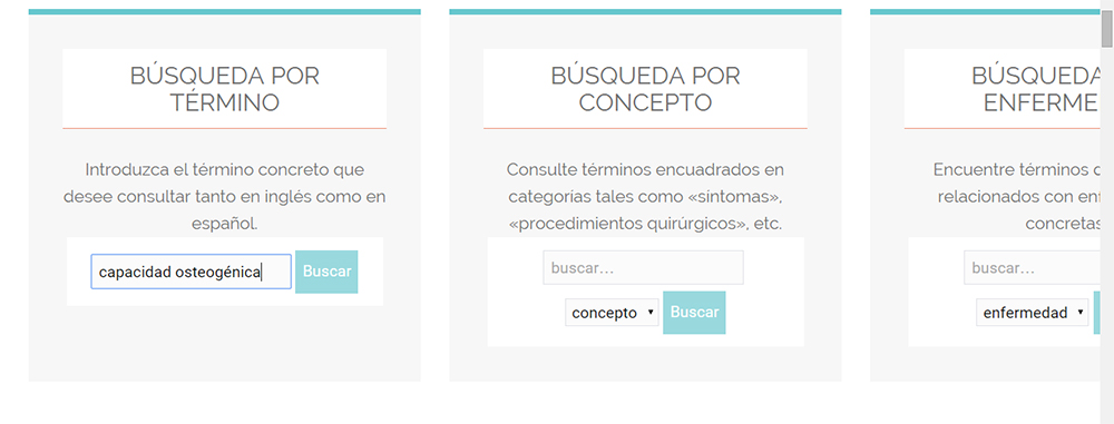 - Para realizar la búsqueda de un término en concreto, introduzca el término en inglés o en español en el cuadro de búsqueda que se le facilita en la página de inicio de este sitio web. A continuación, haga clic en Buscar. En el caso de que el término aparezca en una o más fichas, estas también se mostrarán como resultados de su búsqueda.