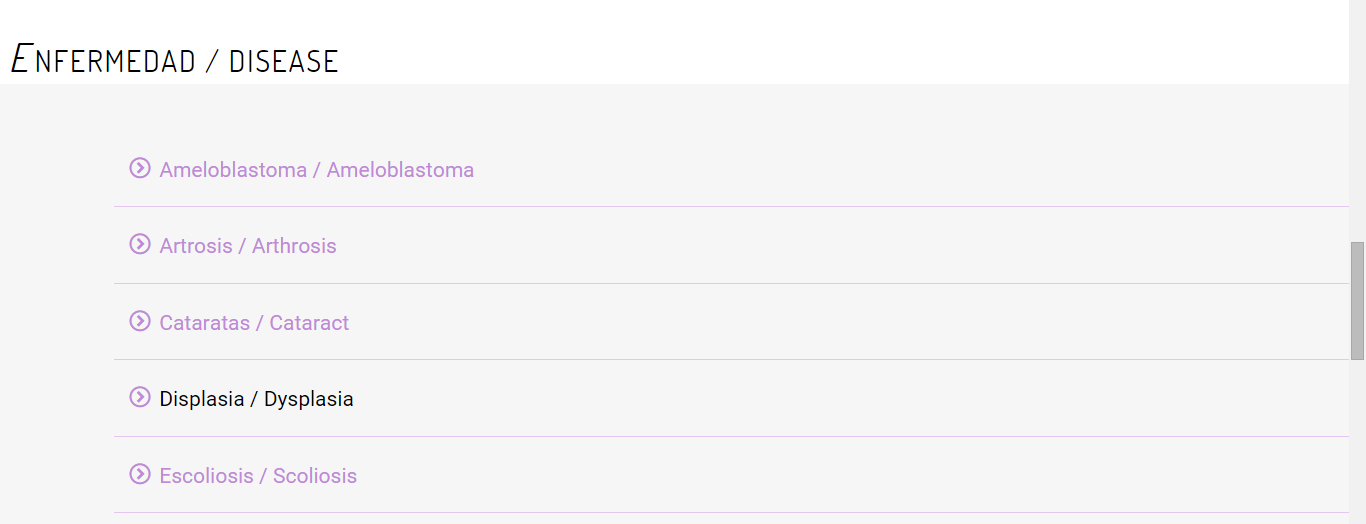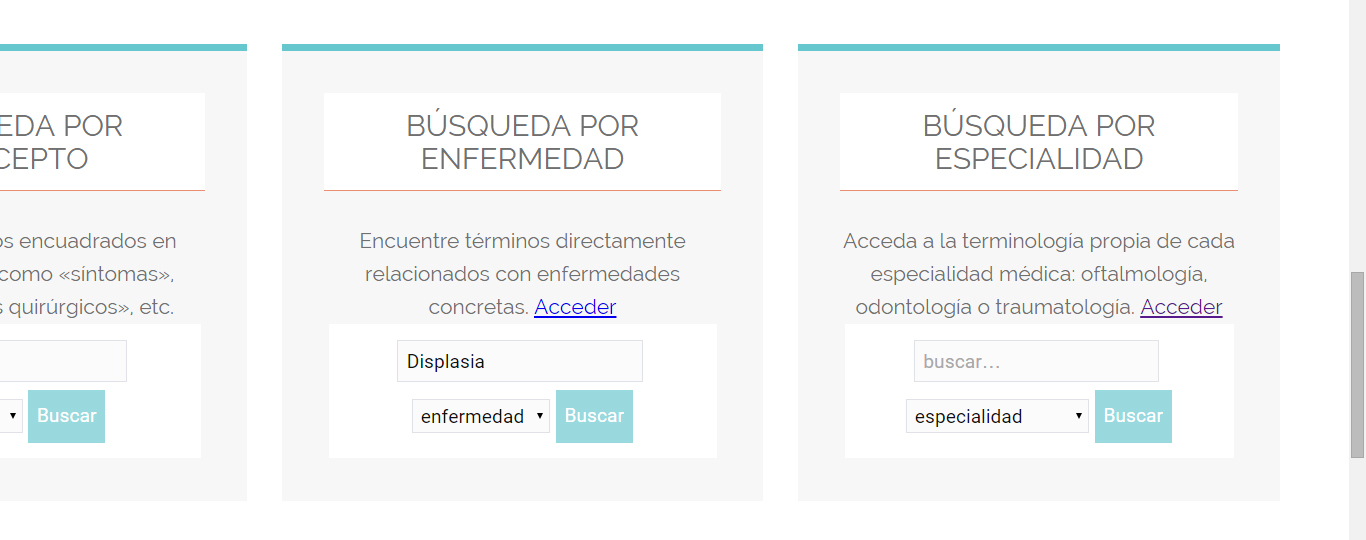 - También puede hacer clic en Acceder y seleccione la enfermedad de la cual buscar términos.