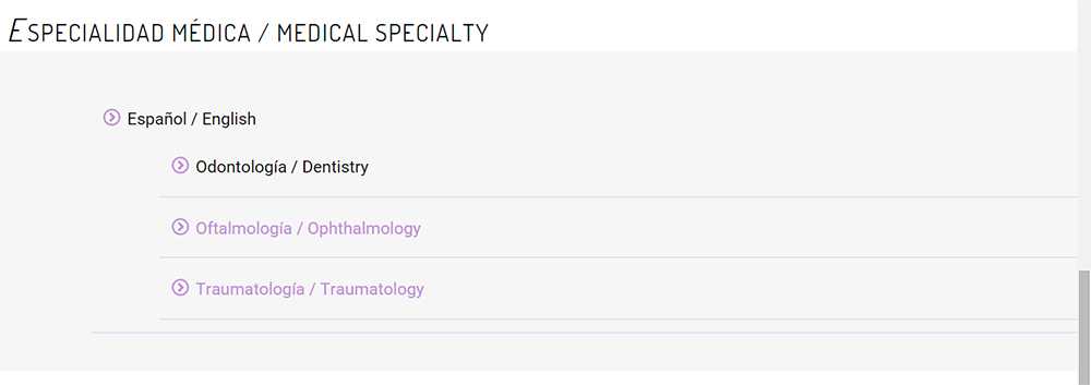 - También puede hacer clic en Acceder y elija la especialidad médica que desee.