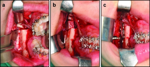 Cirugía de la mandíbula en dos o más porciones para permitir colocar de nuevo los componentes que resultan.